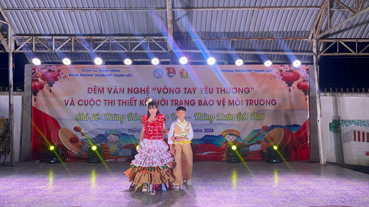 🍀🍀🍀🍀Ngày 06/02/2026 Xã đoàn, Hội đồng Đội xã phối hợp với Đoàn trường, Liên đội trường THCS&THPT Thạnh Lộc tổ chức chương trình văn nghệ gây quỹ “Vòng tay yêu thương” hỗ trợ học sinh có hoàn cảnh khó khăn trên địa bàn xã nhân dịp tết Nguyên đán Bính Ngọ 2026 gắn với hội thi thiết kế thời trang bảo vệ môi trường.