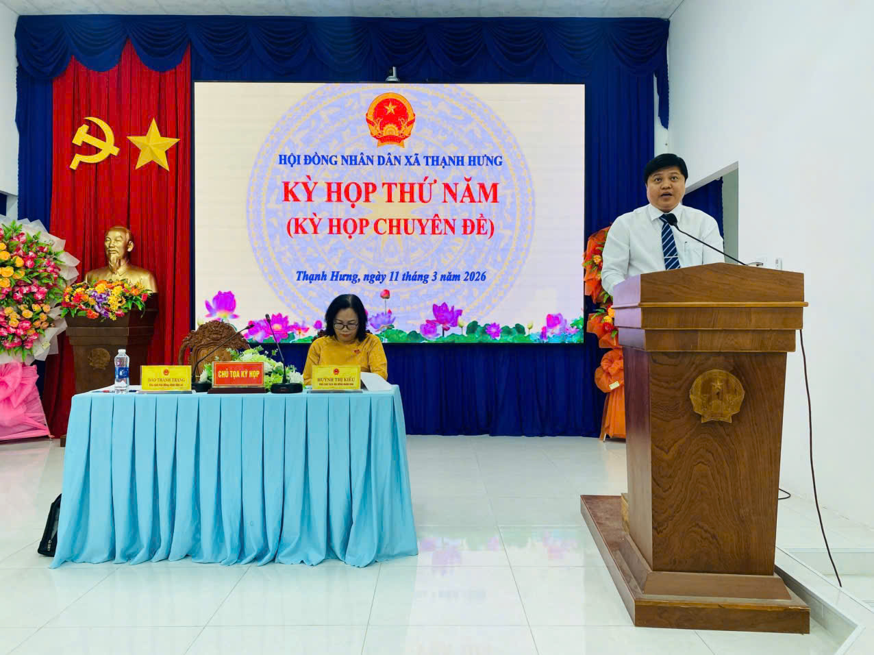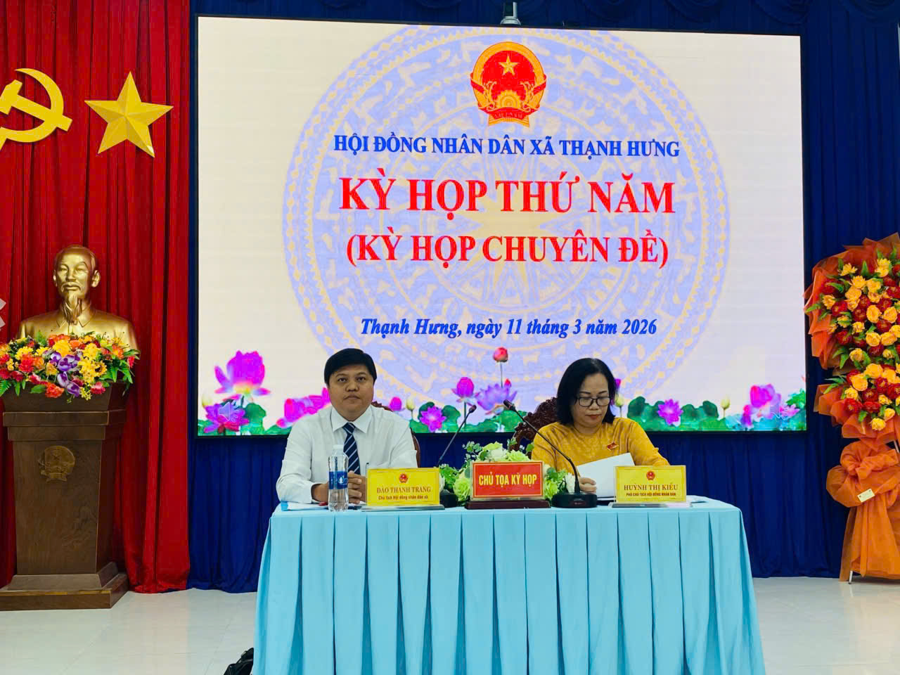 Sáng ngày 11/3/2026, HĐND xã Thạnh Hưng khóa XII, nhiệm kỳ 2021 - 2026 tổ chức kỳ họp thứ 5 (kỳ họp chuyên đề). Tham dự có ông Nguyễn Văn Nghĩa - Bí thư Đảng ủy xã, ông Đào Thành Trang - Phó Bí thư Thường trực Đảng ủy xã, Chủ tịch HĐND xã, ông Trần Văn Vũ - Phó Bí thư Đảng ủy, Chủ tịch UBND xã và các vị đại biểu HĐND xã Thạnh Hưng khóa XII, nhiệm kỳ 2021 – 2026.