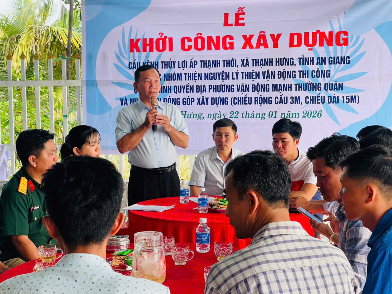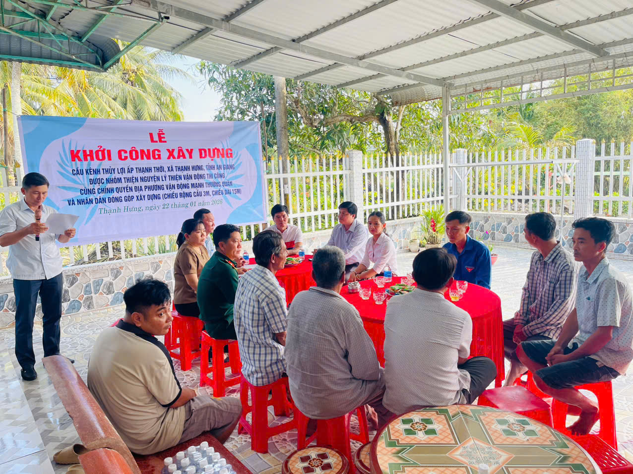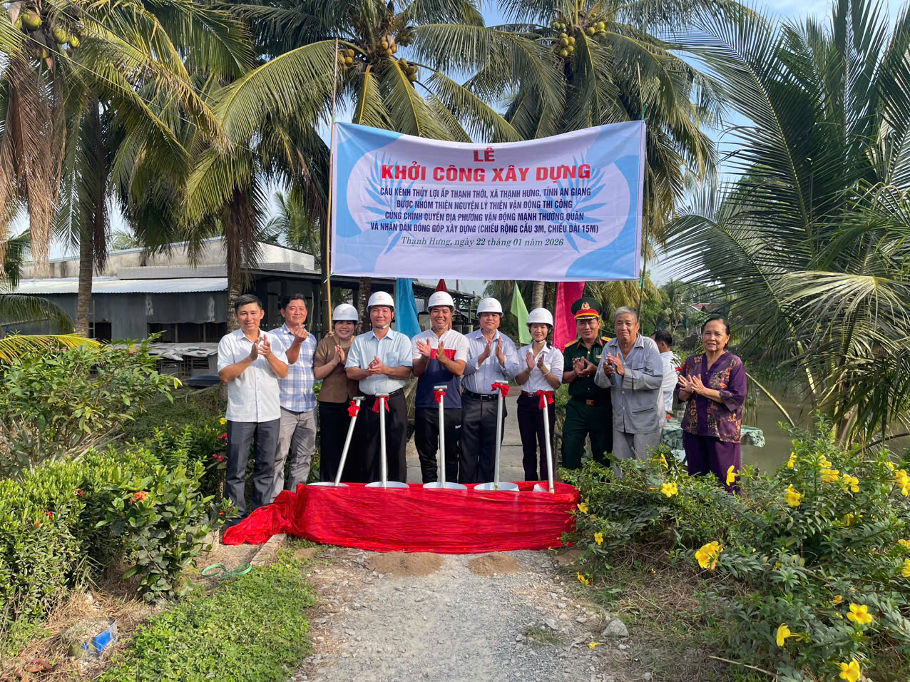 UBND xã Thạnh Hưng phối hợp với anh Lý Thiện đại diện Nhóm thiện nguyện “Kênh Youtube Cuộc sống quê Miền Tây”và Ban lãnh đạo ấp Thạnh Thới, tổ chức Lễ khởi công xây dựng cầu giao thông nông thôn Kênh thủy lợi ấp Thạnh Thới.
