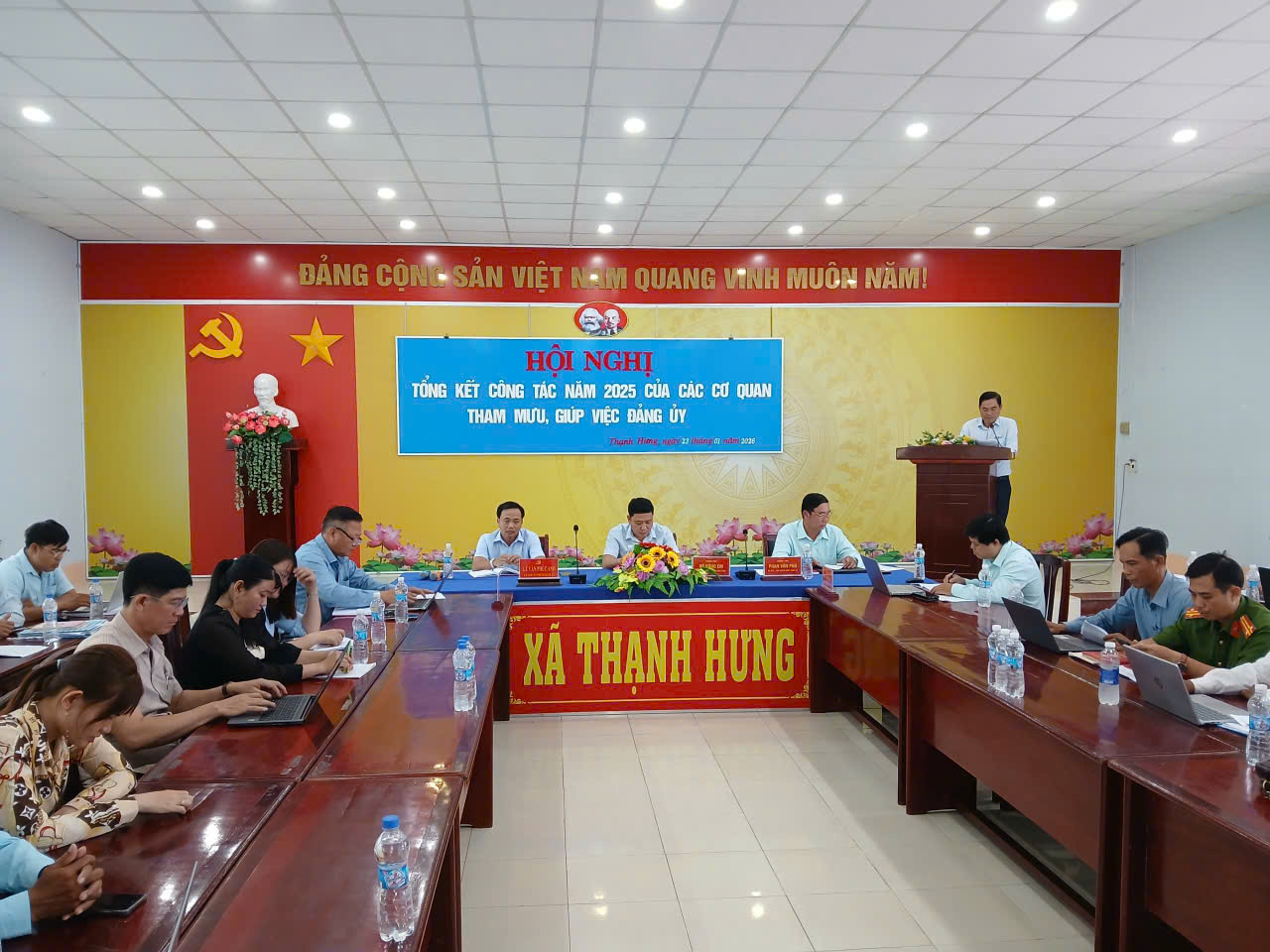 Chiều ngày 23/01/2026, tại Đảng ủy xã Thạnh Hưng, các cơ quan tham mưu giúp việc Đảng ủy: Văn phòng Đảng ủy, Ban Xây dựng Đảng và Ủy ban Kiểm tra Đảng ủy xã tổ chức hội nghị tổng kết tình hình thực hiện nhiệm vụ năm 2025 và đề ra phương hướng, nhiệm vụ năm 2026.